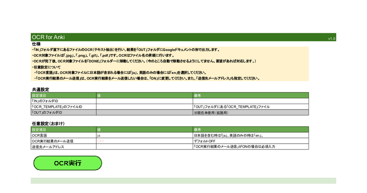「OCR4Anki_v1.0」(スプレッドシート)